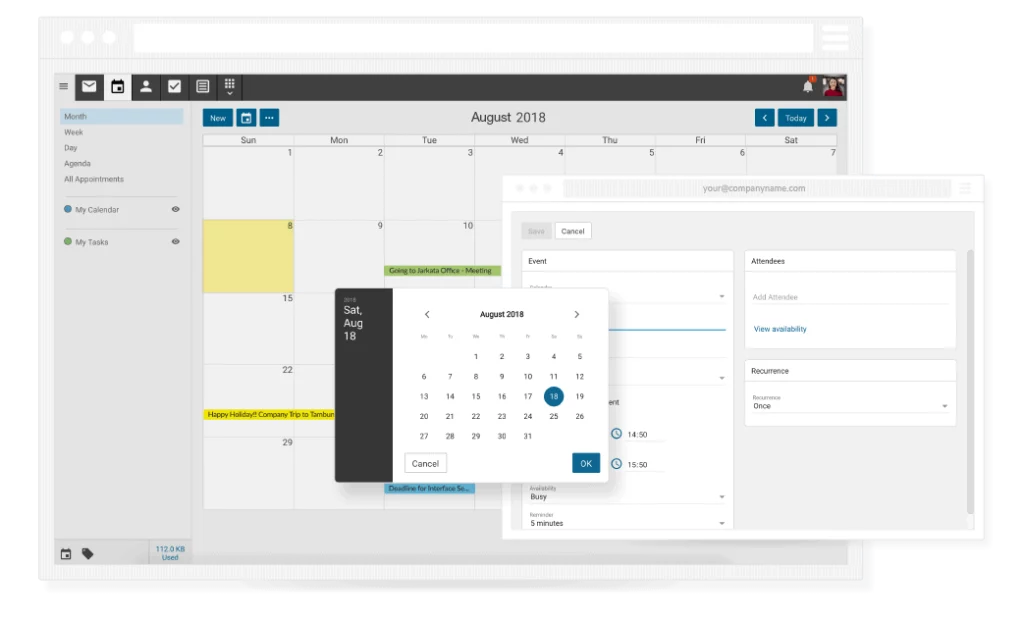 Group Chat in SmarterMail is available in all parts of a Workspace. Users may text chat with one another across all features — including during a video conference — and the chat includes features like as real-time image previews, link previews, the ability to add and upload files, and more.